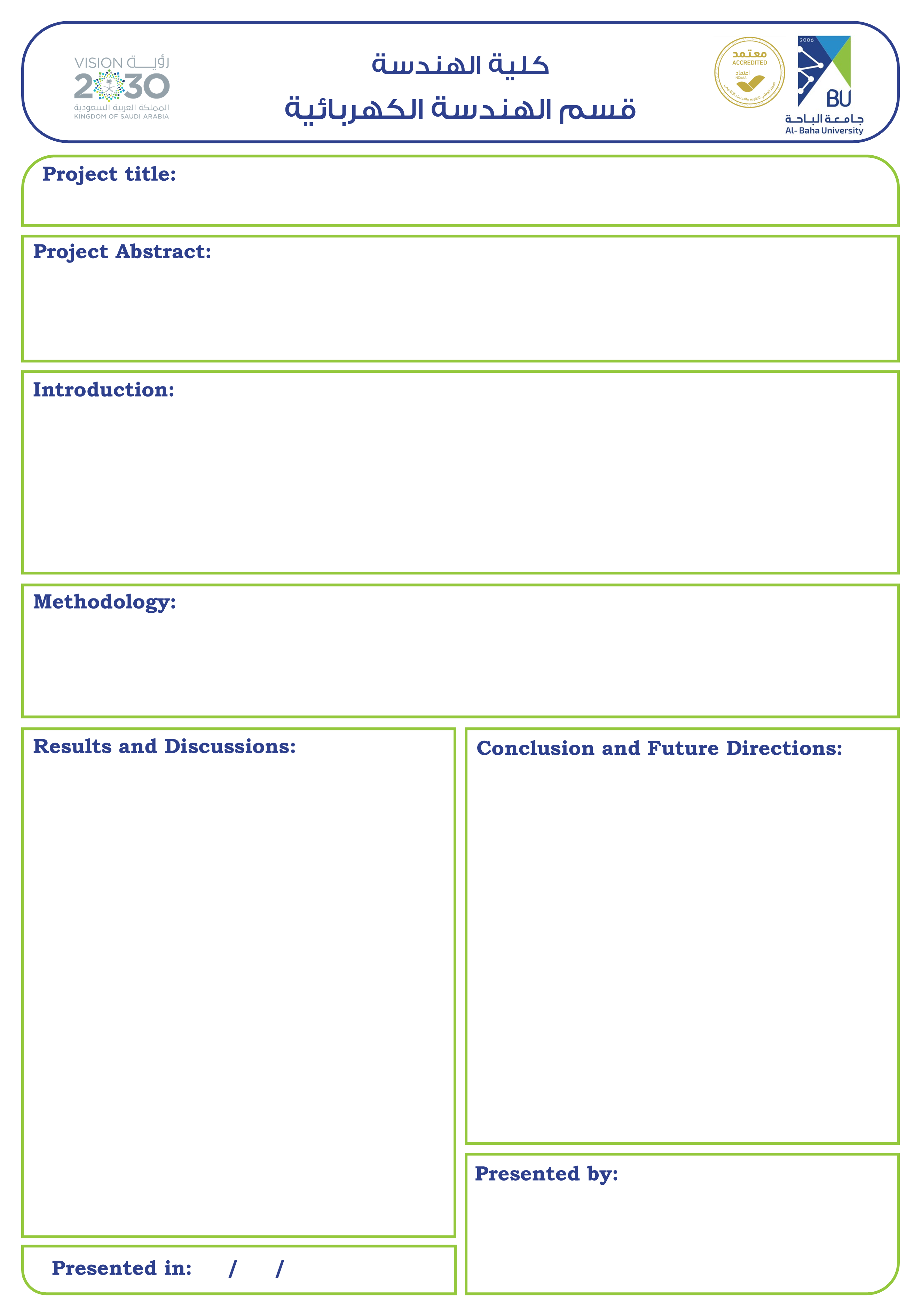 - نموذج تقرير مشروع التخرج (الحصول على الملف من خلال المشرف الأكاديمي)